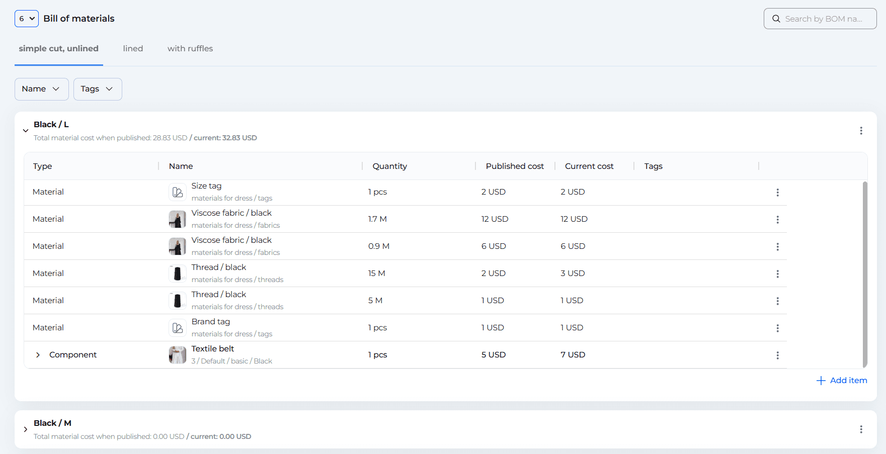 Introduced initial version of Bill of Materials functionality — calculate product cost early in the design stage and manage materials and components per product workflow.